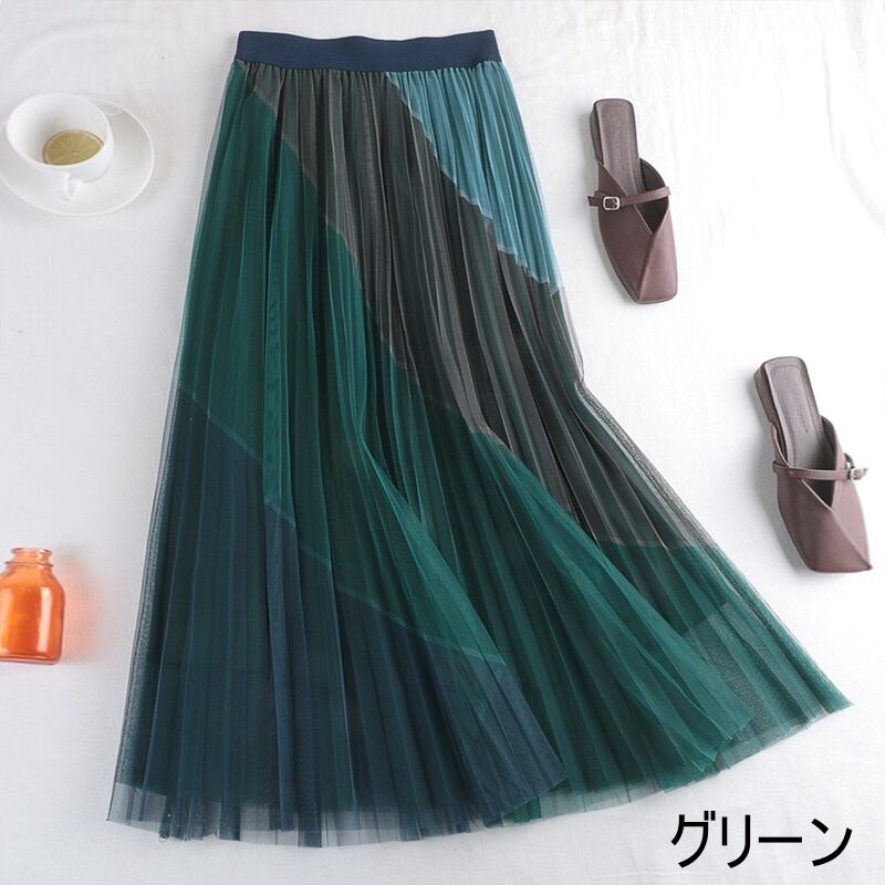 レディース スカート ボトムス プリーツスカート チュールスカート 膝下 ミモレ ミモレ丈 ロング ロング丈 プリーツ チュール かわいい 大人可愛い きれいめ 大人 上品 おしゃれ お洒落 大人女子 エレガント 主役級 存在感 黒 ブラック 緑 グリーン 紫 パープル 灰色 グレー ベージュ 春 10代 20代 30代 40代 女性用 デート お出かけ 公園デビュー 女子会 休日 着回し 普段使い ファッション コーデ モテ 送料無料 インスタ映え | Rena 韓国ファッション レディースアパレル