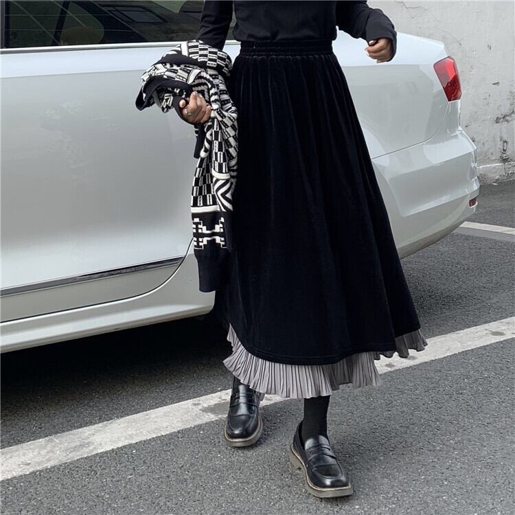 レディース スカート ボトムス フレアスカート ミモレ ミモレ丈 Aライン フリル ハイウエスト かわいい 大人可愛い きれいめ シンプル カジュアル 大人 上品 おしゃれ お洒落 大人女子 存在感 M L XL 2XL 3XL 黒 ブラック モノトーン 秋 冬 10代 20代 30代 40代 女性用 学生 通学 デート お出かけ 公園デビュー 女子会 休日 着回し 普段使い ファッション コーデ モテ 送料無料 インスタ映え | Rena 韓国ファッション レディースアパレル