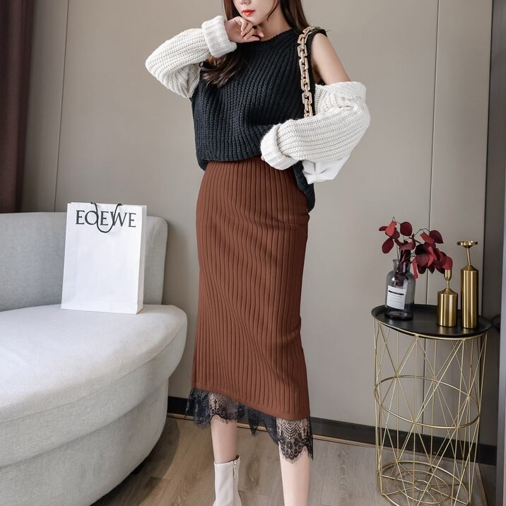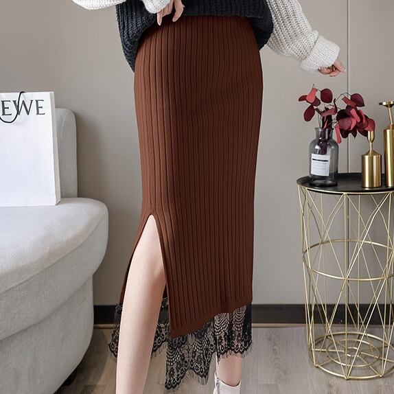 レディース スカート ボトムス タイトスカート 膝下 ミディアム丈 タイト レース スリット サイドスリット バックスリット ハイウエスト かわいい 大人可愛い きれいめ 大人 上品 おしゃれ お洒落 大人女子 エレガント 存在感 白 ホワイト 黒 ブラック 茶色 ブラウン 秋 冬 10代 20代 30代 40代 女性用 ママ デート お出かけ 公園デビュー 女子会 休日 着回し 普段使い ファッション コーデ モテ 送料無料 インスタ映え | Rena 韓国ファッション レディースアパレル
