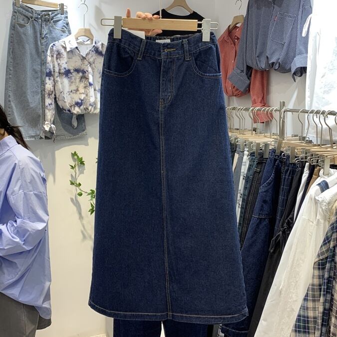 レディース スカート ボトムス デニムスカート 膝丈 ひざ丈 ハイウエスト かわいい 大人可愛い シンプル カジュアル 大人 上品 おしゃれ お洒落 かっこいい 大人可愛い ラフ クール S M L 春 10代 20代 30代 40代 女性用 ママ 学生 通学 デート お出かけ 公園デビュー 女子会 休日 着回し 普段使い ファッション コーデ モテ 送料無料 | Rena 韓国ファッション レディースアパレル
