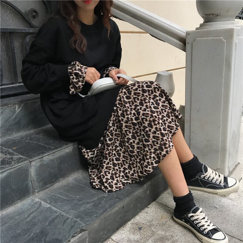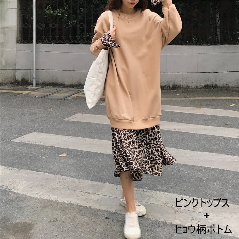 レディース トップス スカート ボトムス カットソー ミモレ ミモレ丈 長袖 2点セット かわいい 大人可愛い シンプル カジュアル 大人 上品 おしゃれ お洒落 大人女子 ラフ ガーリー 主役級 存在感 S M L XL 黒 ブラック ピンク 無地 ヒョウ柄 春 秋 10代 20代 30代 40代 ママ デート お出かけ 公園デビュー 女子会 お泊まり 休日 着回し 普段使い ファッション コーデ 楽ちん モテ 送料無料 インスタ映え | Rena 韓国ファッション レディースアパレル