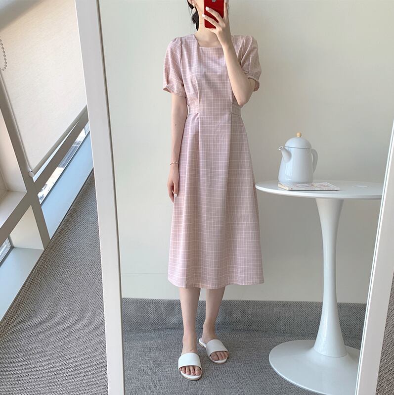 レディース ワンピース フレアワンピース 膝下 袖あり 半袖 ラウンドネック セミフレア 細身 Aライン フリル バックリボン 綿 かわいい 大人可愛い きれいめ シンプル カジュアル 大人 上品 おしゃれ お洒落 キュート とろみ感 S M L XL 青 ブルー ピンク ストライプ 春 秋 2021 30代 OL 通勤 デート 女子会 休日 韓国 韓国系 ファッション コーデ スタイル 送料無料 トレンド 流行 インスタ映え | Rena 韓国ファッション レディースアパレル