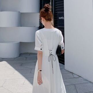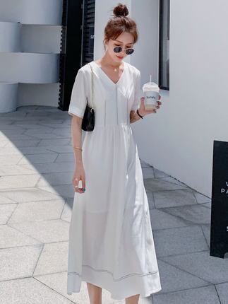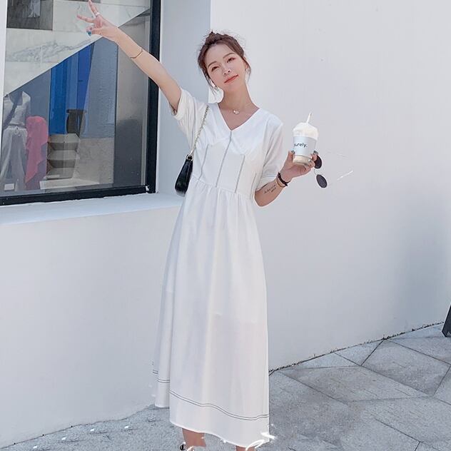 レディース ワンピース フレアワンピース ミモレ丈 袖あり 半袖 Vネック セミフレア スリム 細身 ストレート Iライン フリル リボン バックリボン ポリエステル かわいい 大人可愛い きれいめ シンプル カジュアル 大人 上品 おしゃれ お洒落 キュート セクシー とろみ感 抜け感 S M L XL 白 ホワイト 無地 春 夏 2021 20代 30代 OL 通勤 学生 通学 デート お出かけ 公園デビュー 女子会 休日 リゾート 旅行 海 ファッション 送料無料 トレンド 流行 インスタ映え | Rena 韓国ファッション レディースアパレル