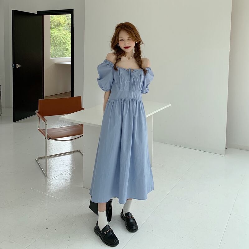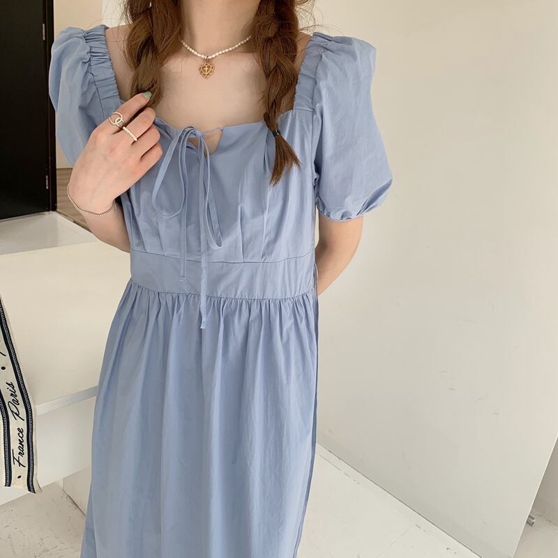 レディース ワンピース フレアスカート ミモレ 袖あり 半袖 スクエアネック フレア Aライン フリル ベルト かわいい 大人可愛い シンプル カジュアル 大人 上品 おしゃれ お洒落 大人可愛い ラブリー キュート ガーリー S M L XL 青 ブルー 春カラー クリーム 無地 春 夏 2021 10代 20代 オフィス ビジネス OL 通勤 学生 通学 デート お出かけ 女子会 休日 パーティー 韓国 韓国系 オルチャン ファッション コーデ スタイル 送料無料 トレンド 流行 インスタ映え | Rena 韓国ファッション レディースアパレル