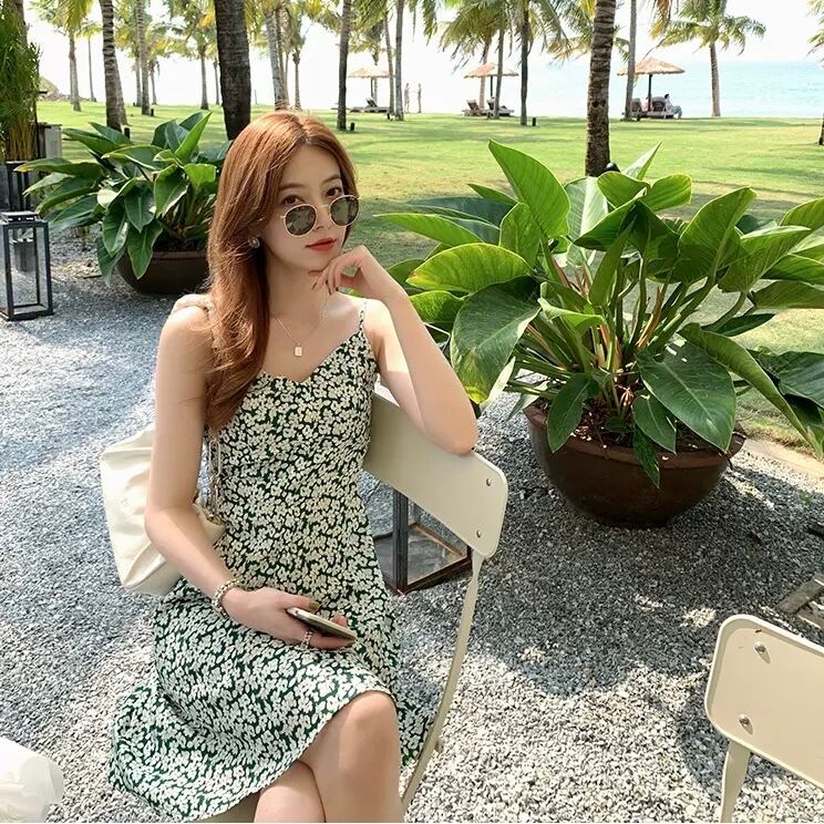 レディース ワンピース ワンピドレス ショート ショート丈 袖なし ノースリーブ Vネック Aライン シフォン 薄手 かわいい 大人可愛い カジュアル おしゃれ レトロ 大人可愛い メンズライク キュート セクシー S M L XL 赤 レッド 緑 グリーン イエロー 柄 花柄 小花柄 フラワー リーフ柄 ボタニカル 夏 2021 10代 20代 女性用 女の子 デート お出かけ 女子会 休日 パーティー イベント リゾート 旅行 海 プール 韓国系 オルチャン 楽ちん モテ 送料無料 | Rena 韓国ファッション レディースアパレル