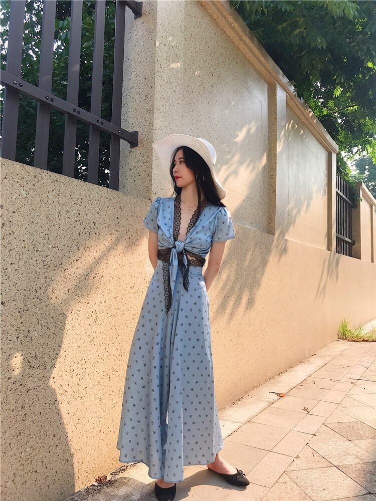 レディース セットアップ ロング ロング丈 袖あり 半袖 レース かわいい 大人可愛い きれいめ 大人 上品 おしゃれ お洒落 大人可愛い 大人女子 セクシー 存在感 M L 水色 夏 10代 20代 30代 デート お出かけ 女子会 休日 イベント 旅行 海 普段使い ファッション コーデ 送料無料 | Rena 韓国ファッション レディースアパレル
