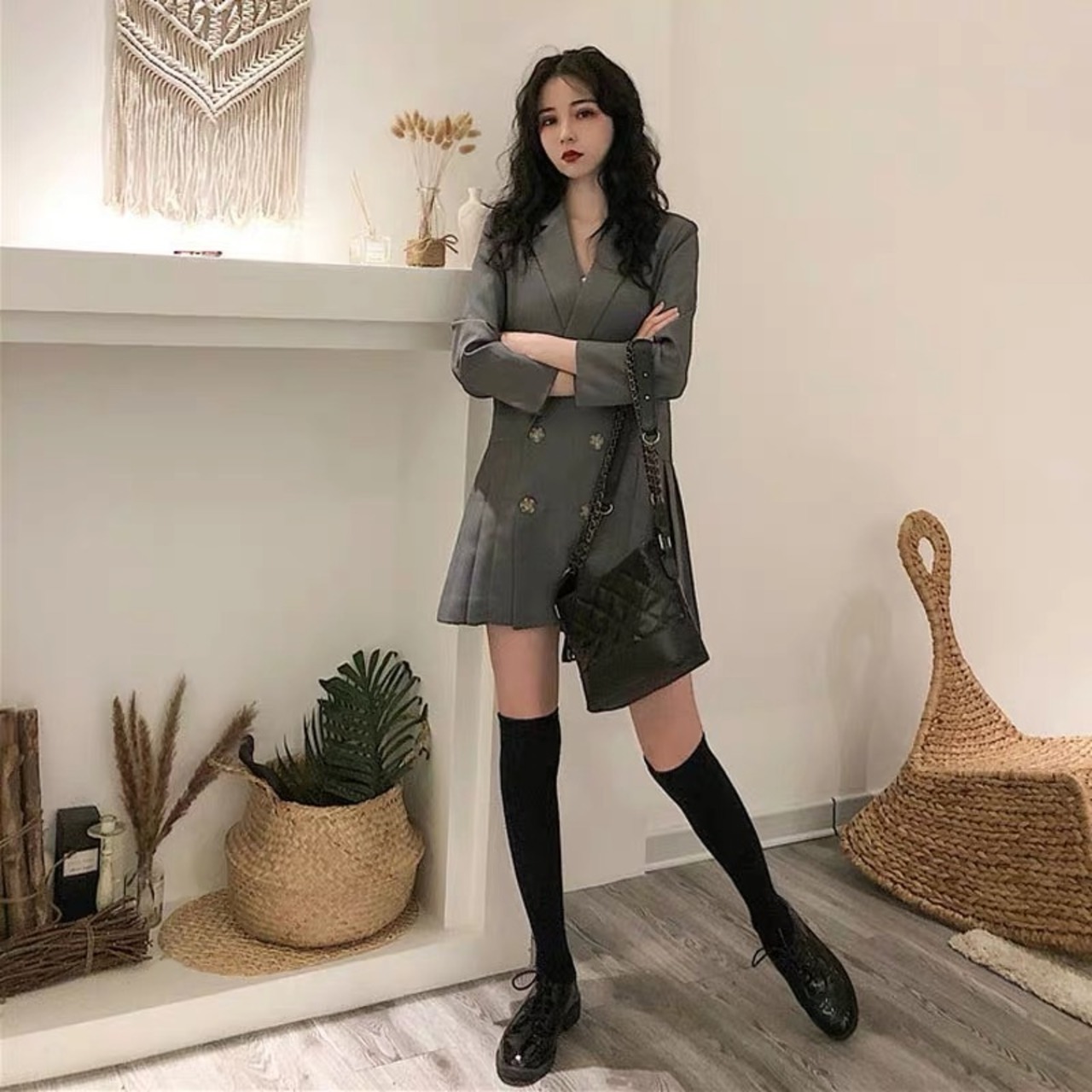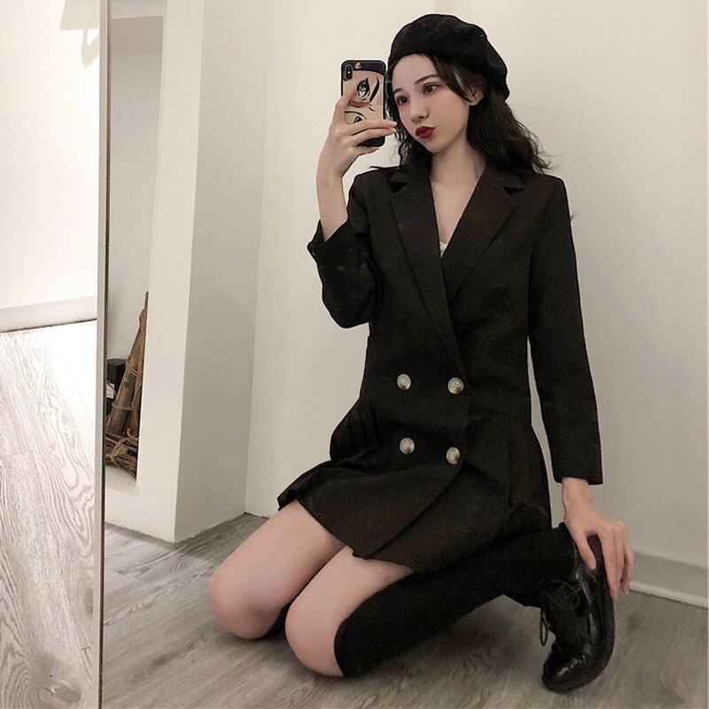 レディース アウター ジャケット 膝上 長袖 プリーツ かわいい 大人可愛い きれいめ カジュアル 大人 上品 おしゃれ お洒落 かっこいい レトロ 大人女子 キュート 個性的 クール エレガント 主役級 存在感 S M L XL 黒 ブラック 灰色 グレー 春 秋 10代 20代 30代 女性用 学生 通学 デート お出かけ 公園デビュー 女子会 休日 着回し 普段使い ファッション コーデ モテ 送料無料 インスタ映え | Rena 韓国ファッション レディースアパレル