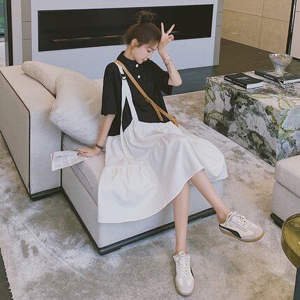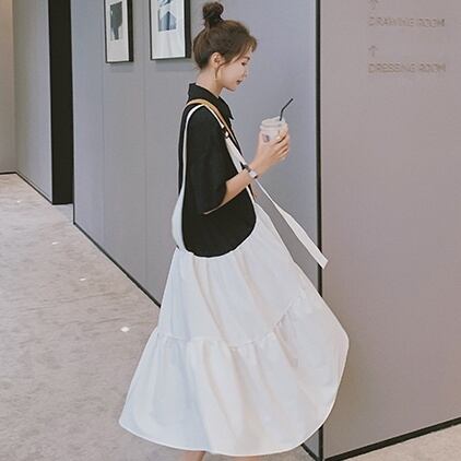 レディース ワンピース シャツ ティアードワンピース ミモレ ミモレ丈 袖あり ドッキング ツーピース かわいい 大人可愛い きれいめ カジュアル 大人 上品 おしゃれ お洒落 かっこいい 大人女子 ラフ 個性的 主役級 存在感 S M L XL 白 ホワイト 黒 ブラック モノトーン 春 夏 10代 20代 30代 女性用 ママ 学生 通学 デート お出かけ 公園デビュー 女子会 休日 着回し 普段使い ファッション コーデ モテ 送料無料 インスタ映え | Rena 韓国ファッション レディースアパレル