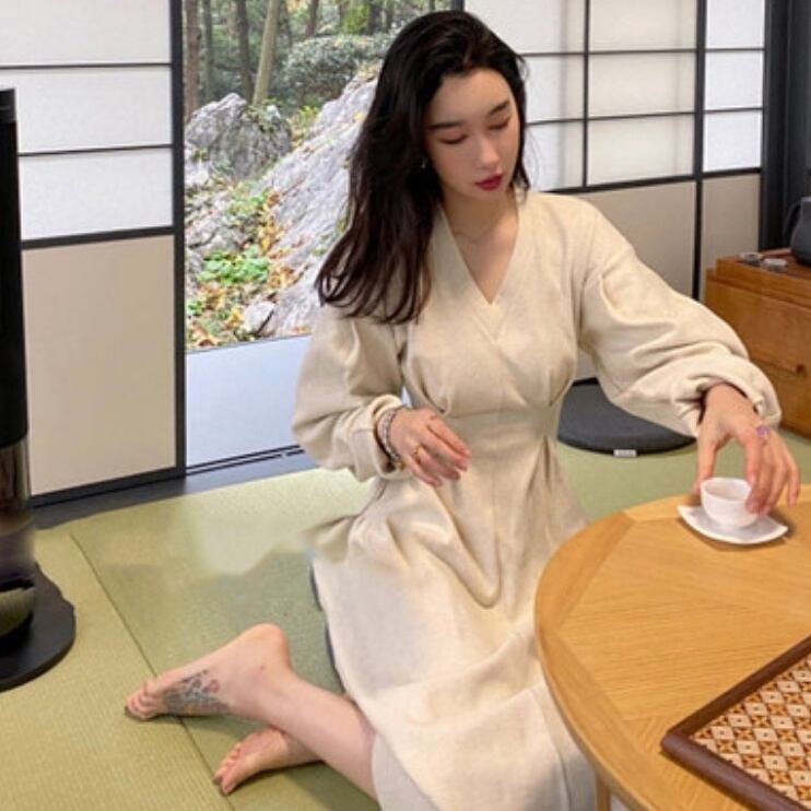 レディース ワンピース フレアワンピース ワンピドレス ミモレ ミモレ丈 袖あり 長袖 Vネック フレア Aライン かわいい 大人可愛い きれいめ シンプル 大人 上品 おしゃれ お洒落 大人可愛い 大人女子 こなれ感 S M L XL 白 ホワイト 灰色 グレー 無地 春 夏 20代 30代 通勤 お出かけ 女子会 休日 イベント 普段使い モテ 送料無料 | Rena 韓国ファッション レディースアパレル
