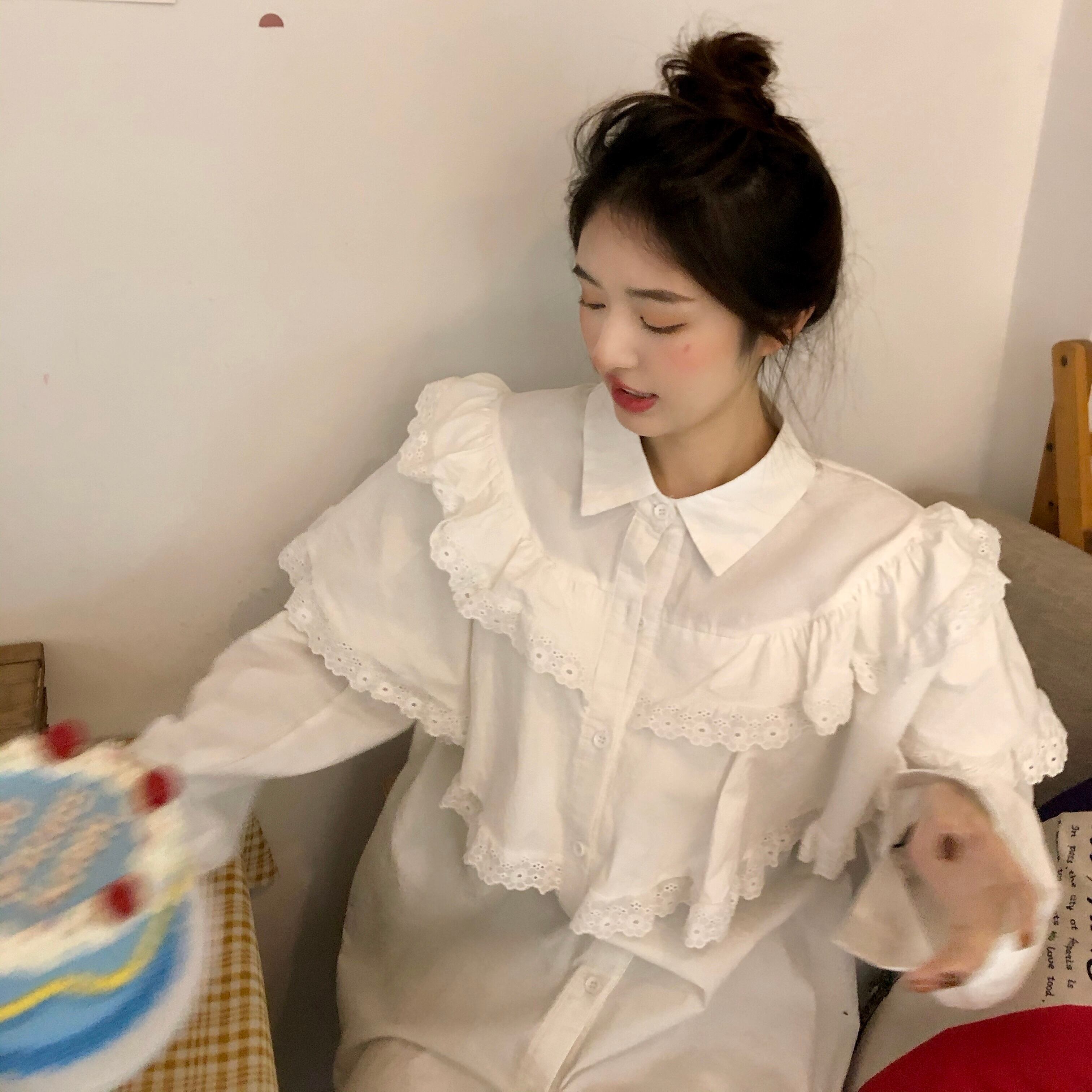 レディース トップス シャツ ブラウス 白シャツ 袖あり 長袖 ボリューム袖 萌袖 襟付き プリーツ リボン かわいい 大人可愛い おしゃれ お洒落 大人可愛い 大人女子 こなれ感 ラブリー キュート ガーリー 主役級 存在感 フリーサイズ 大きめ ビッグサイズ ゆったり ゆる 白 ホワイト 無地 オールシーズン 誕生日 10代 20代 30代 デート お出かけ 女子会 お泊まり 休日 イベント コーデ スタイル 楽ちん モテ 送料無料 インスタ映え | Rena 韓国ファッション レディースアパレル