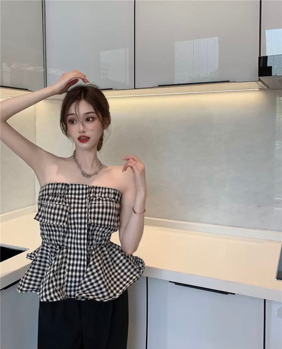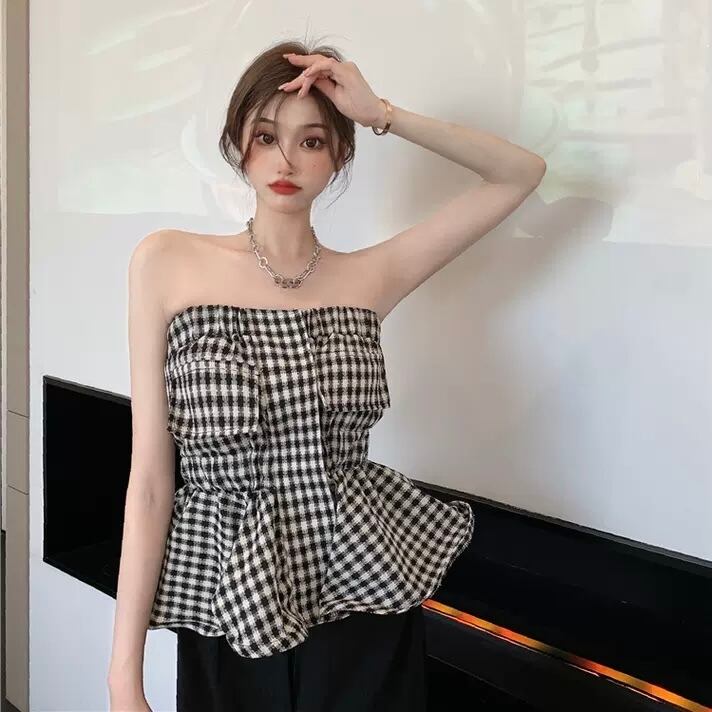レディース トップス チューブトップ ショート ショート丈 袖なし ノースリーブ スリム 切り替えデザイン 裾フレア フリル ウエストマーク ウエストゴム 大人可愛い おしゃれ お洒落 大人可愛い 大人女子 ラブリー キュート セクシー S M L 白 ホワイト 黒 ブラック 柄 チェック柄 ギンガムチェック 夏 2021 10代 20代 女性用 女の子 学生 デート お出かけ 女子会 休日 パーティー イベント リゾート 旅行 海 プール 韓国系 オルチャン スタイル モテ 新作 送料無料 | Rena 韓国ファッション レディースアパレル