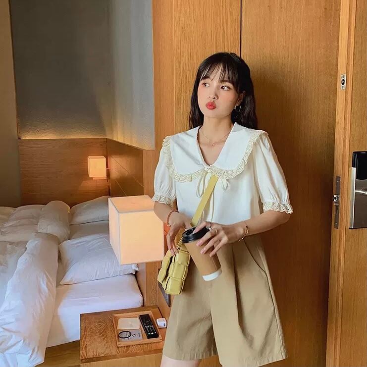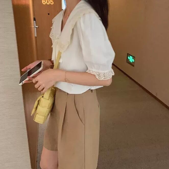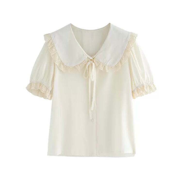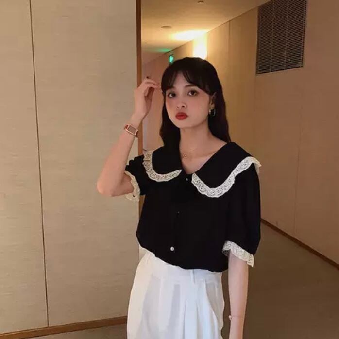 レディース トップス Tシャツ 白シャツ 白トップス 袖あり 半袖 Vネック 襟付き セミフレア 前開き レース シフォン かわいい 大人可愛い カジュアル おしゃれ レトロ 大人可愛い 大人女子 メンズライク キュート ガーリー M L XL 2XL 3XL 4XL 大きいサイズ 白 ホワイト 黒 ブラック 無地 夏 2020 10代 20代 女性用 ママ OL 通勤 学生 通学 デート お出かけ 公園デビュー 女子会 休日 リゾート 旅行 コーデ モテ 体系カバー 送料無料 | Rena 韓国ファッション レディースアパレル