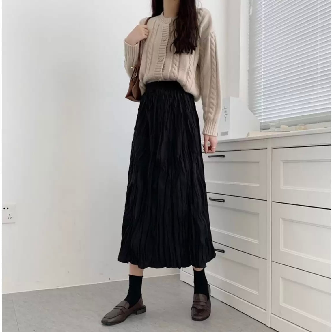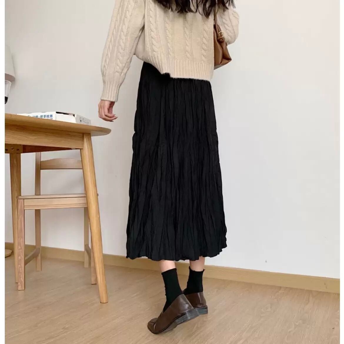 レディース スカート ボトムス プリーツスカート 膝下 ミモレ ミモレ丈 ミディアム丈 セミフレア Aライン プリーツ ハイウエスト ウエストゴム 伸縮性 ワッシャー 大人可愛い シンプル おしゃれ レトロ 大人女子 ガーリー 抜け感 XS S M L 小さいサイズ 白 ホワイト 黒 ブラック 無地 春 秋 2020 10代 20代 30代 女性用 ママ 通勤 学生 通学 デート お出かけ 女子会 休日 着回し 普段使い オルチャン ファッション コーデ 楽ちん 体系カバー 送料無料 | Rena 韓国ファッション レディースアパレル