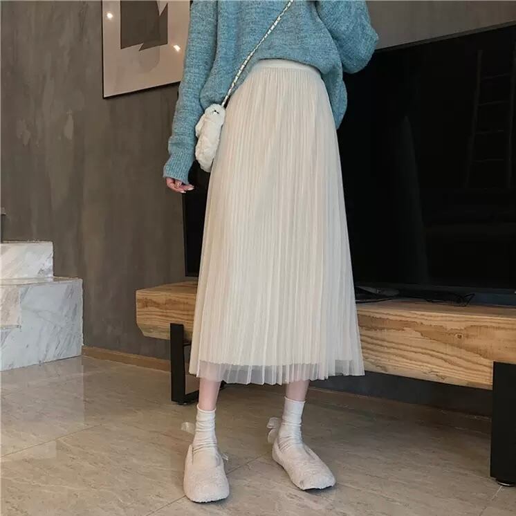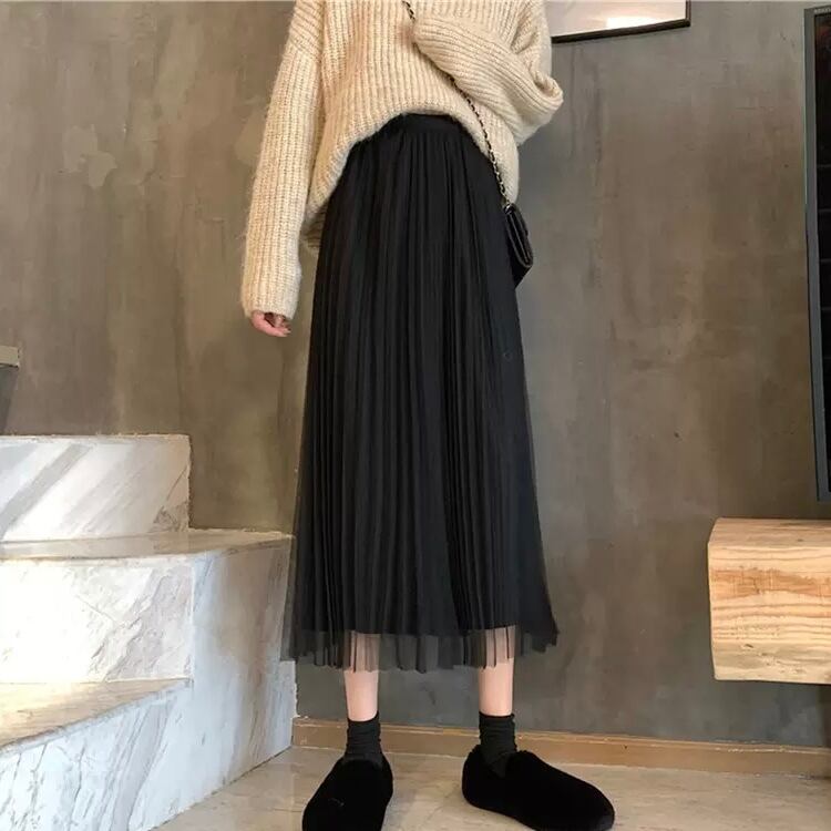 レディース スカート プリーツスカート チュールスカート 膝下 ミモレ ミディアム丈 フレア Aライン プリーツ チュール ハイウエスト ウエストゴム 透け感 かわいい 大人可愛い シンプル おしゃれ 大人可愛い メンズライク キュート ガーリー M L XL 2XL 3XL 4XL 白 ホワイト 黒 ブラック 無地 春 秋 2021 10代 20代 女性用 ママ 通勤 学生 通学 デート お出かけ 女子会 休日 リゾート 旅行 着回し 韓国系 オルチャン モテ 体系カバー 新作 送料無料 | Rena 韓国ファッション レディースアパレル