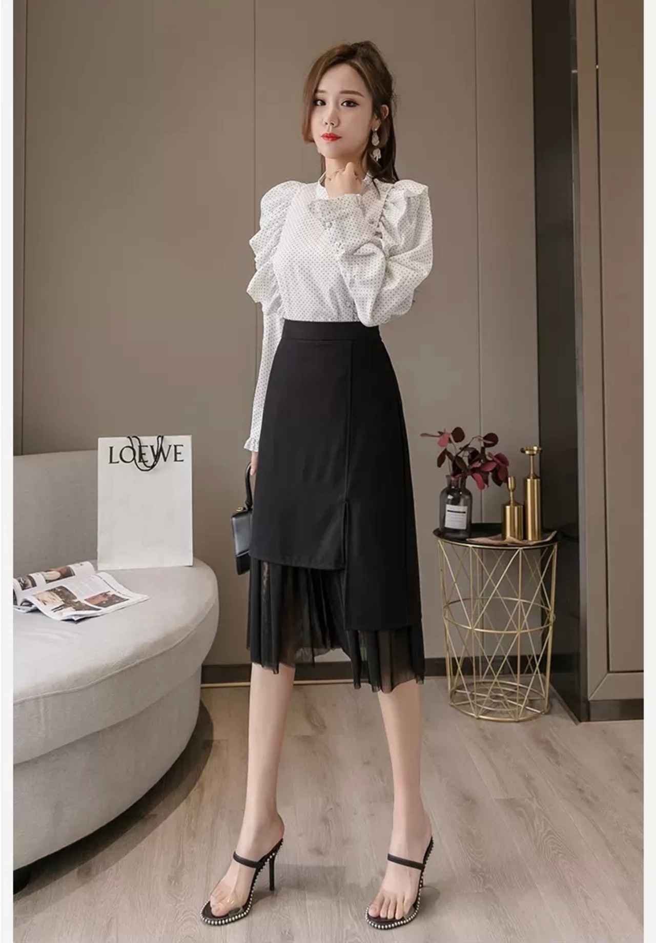 裾がチュールプリーツになって、動く度に揺れるデザイン♪