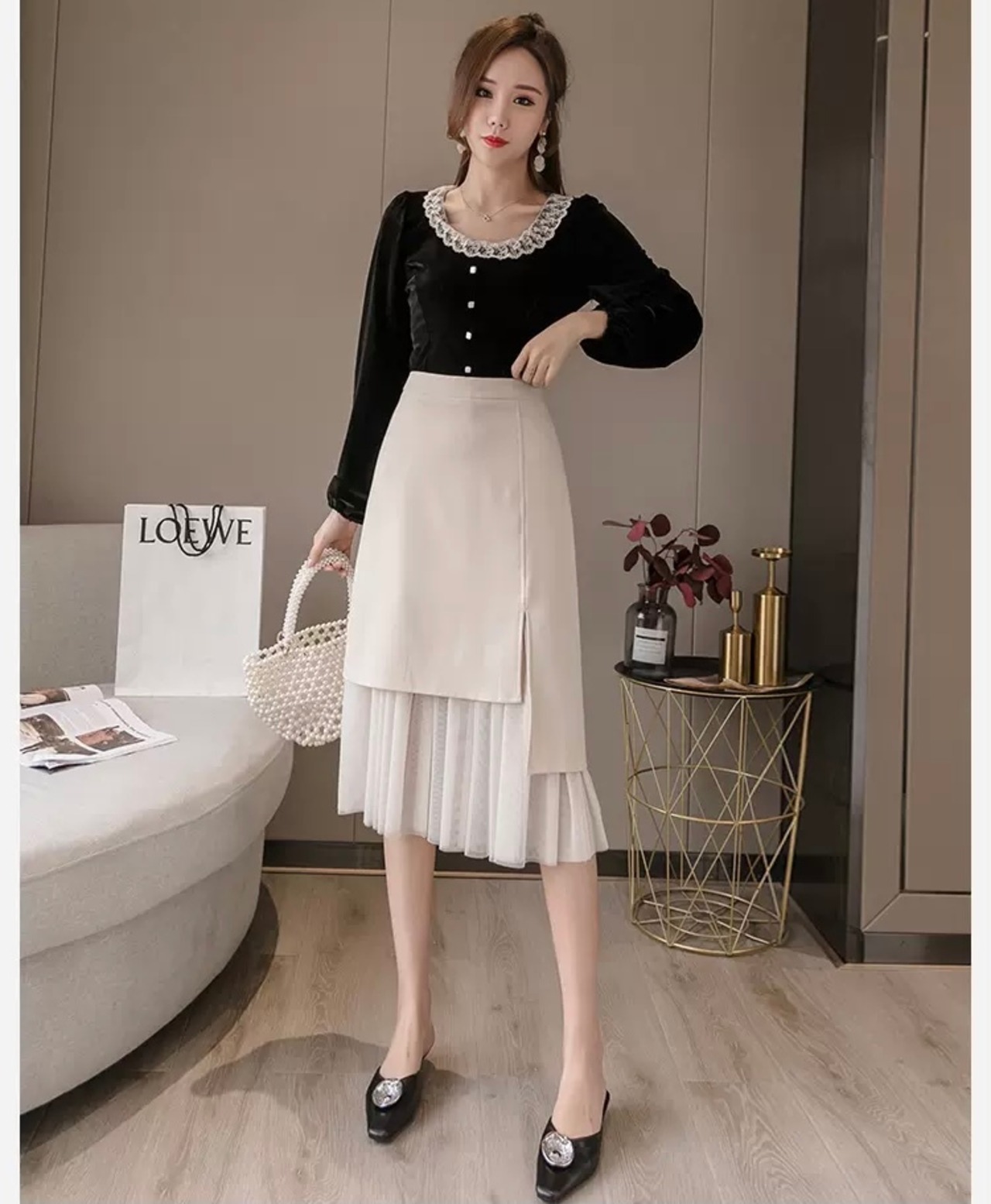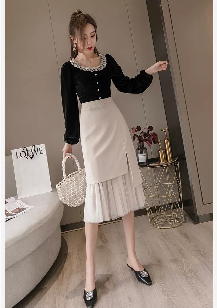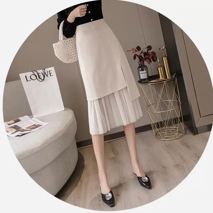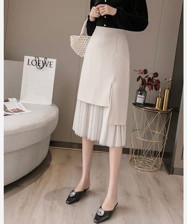レディース スカート ボトムス プリーツスカート 膝丈 ひざ丈 ミディアム丈 Aライン ドッキング プリーツ チュール サイドスリット ファスナー ウエストゴム 薄手 大人 おしゃれ レトロ 大人女子 キュート ガーリー 個性的 エレガント S M L XL 2XL 白 ホワイト 黒 ブラック 無地 春 秋 入学式 入園式 2021 20代 30代 女性用 ママ OL 通勤 学生 通学 デート お出かけ 女子会 休日 パーティー イベント 韓国系 オルチャン コーデ モテ 美脚 新作 送料無料 | Rena 韓国ファッション レディースアパレル