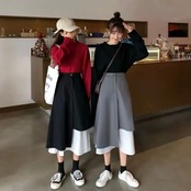 レディース スカート ボトムス フレアスカート 膝下 ミモレ ミモレ丈 ミディアム丈 フレア Aライン ドッキング ハイウエスト かわいい 大人可愛い カジュアル おしゃれ レトロ 大人可愛い 大人女子 ガーリー 個性的 M L 黒 ブラック 灰色 グレー カーキ バイカラー 無地 春 秋 2021 10代 20代 30代 女性用 ママ OL 通勤 学生 通学 デート お出かけ 女子会 休日 リゾート 旅行 普段使い 韓国系 オルチャン コーデ モテ 新作 送料無料 インスタ映え