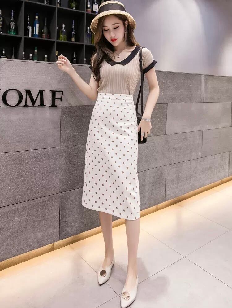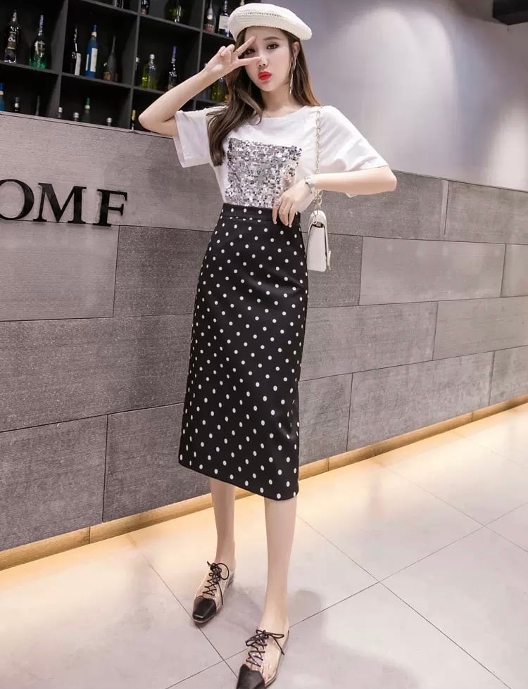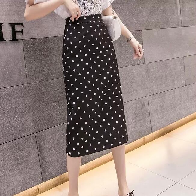 レディース スカート ボトムス ペンシルスカート 膝丈 ひざ丈 ミディアム丈 スリム Aライン バックスリット ファスナー ハイウエスト かわいい 大人可愛い おしゃれ レトロ 大人可愛い 大人女子 キュート セクシー S M L XL 白 ホワイト 黒 ブラック 柄 ドット柄 水玉 春 夏 2021 10代 20代 女性用 ママ 女の子 通勤 学生 通学 デート お出かけ 女子会 休日 リゾート 旅行 韓国系 オルチャン コーデ モテ 美脚 新作 送料無料 | Rena 韓国ファッション レディースアパレル