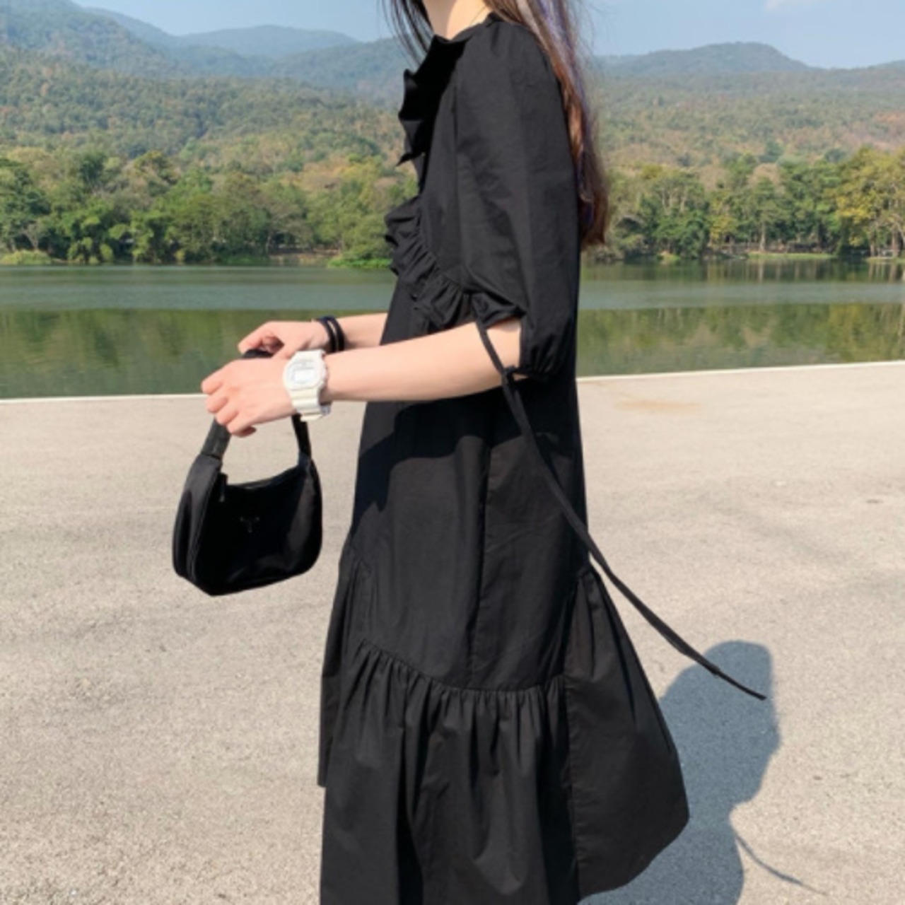 レディース ワンピース ティアードワンピース 膝下 半袖 Vネック セミフレア 綿 かわいい 大人可愛い きれいめ シンプル カジュアル 大人 上品 おしゃれ お洒落 大人可愛い 大人女子 ラフ キュート ガーリー 個性的 主役級 存在感 フリーサイズ ゆったり 黒 ブラック 無地 春 夏 秋 20代 30代 OL 学生 通学 デート お出かけ 女子会 休日 普段使い お揃い 韓国系 コーデ スタイル 楽ちん モテ 体系カバー 美脚 脚長 定番 送料無料 トレンド 流行 インスタ映え