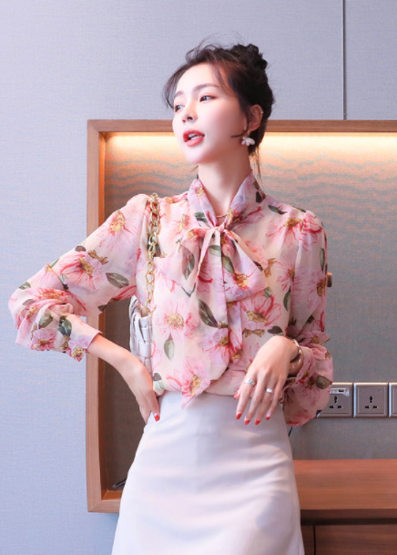 レディース トップス シャツ ブラウス 長袖 リボン かわいい 大人可愛い きれいめ シンプル カジュアル 大人 上品 おしゃれ お洒落 大人可愛い 大人女子 ラフ キュート ガーリー 主役級 存在感 S M L XL 2XL ピンク 花柄 春 夏 秋 20代 30代 40代 オフィス ビジネス OL 通勤 学生 通学 デート お出かけ 女子会 休日 普段使い お揃い 韓国系 オルチャン コーデ スタイル 楽ちん モテ 体系カバー 美脚 脚長 定番 送料無料 トレンド 流行 インスタ映え | Rena 韓国ファッション レディースアパレル