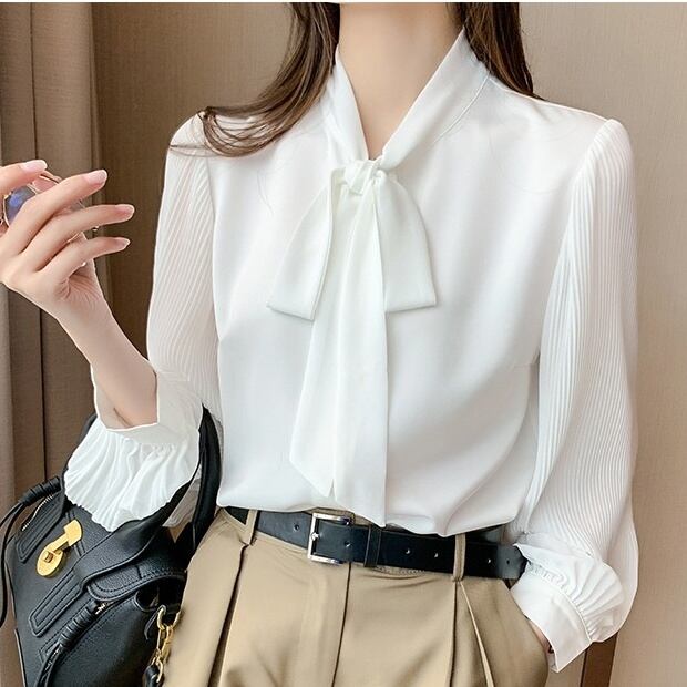 レディース トップス ブラウス 袖あり 長袖 襟付き プリーツ かわいい 大人可愛い きれいめ 大人 上品 おしゃれ お洒落 大人可愛い 大人女子 S M L XL 2XL 白 ホワイト 無地 春 秋 10代 20代 30代 オフィス ビジネス OL 通勤 通学 デート お出かけ 女子会 休日 旅行 普段使い ファッション コーデ 送料無料