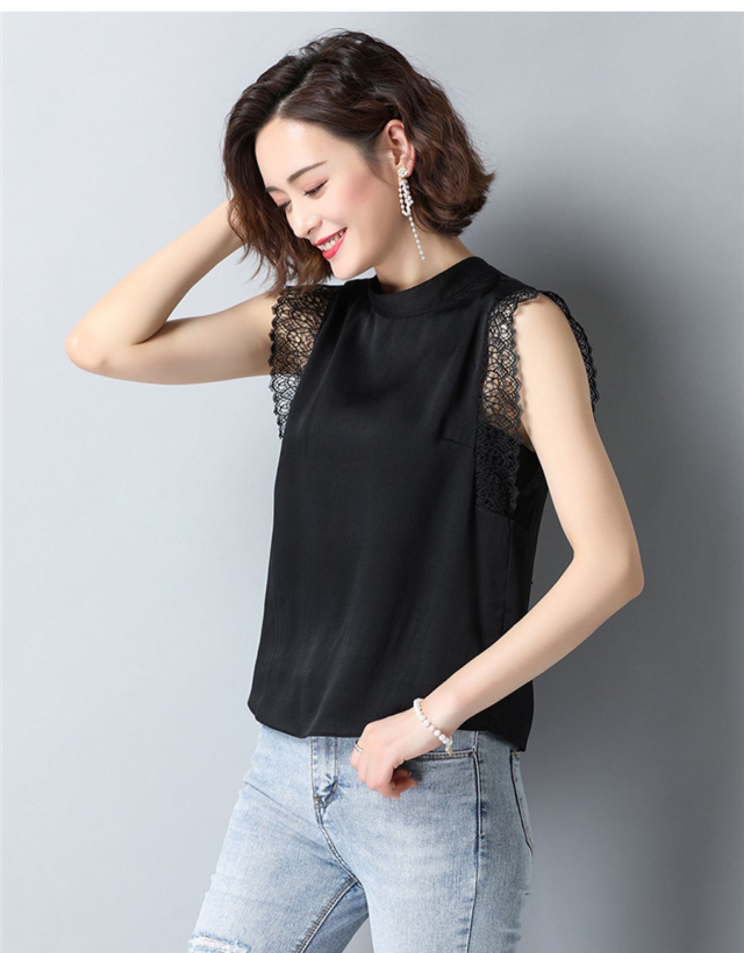 レディース トップス シャツ 袖なし ノースリーブ レース かわいい 大人可愛い 大人 上品 おしゃれ お洒落 大人可愛い 大人女子 M L XL 白 ホワイト 黒 ブラック 無地 春 夏 10代 20代 30代 学生 デート お出かけ 女子会 休日 イベント 旅行 普段使い ファッション コーデ モテ 送料無料 | Rena 韓国ファッション レディースアパレル
