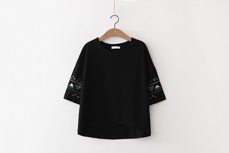 レディース トップス Tシャツ 袖あり 7分袖 七分袖 スクエアネック 刺繍 シンプル カジュアル 大人 おしゃれ お洒落 大人女子 こなれ感 ラフ 白 ホワイト 黒 ブラック 青 ブルー 柄 春 夏 10代 20代 30代 学生 通学 デート お出かけ 公園デビュー 休日 運動 旅行 海 普段使い ファッション コーデ 送料無料 | Rena 韓国ファッション レディースアパレル