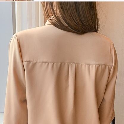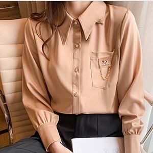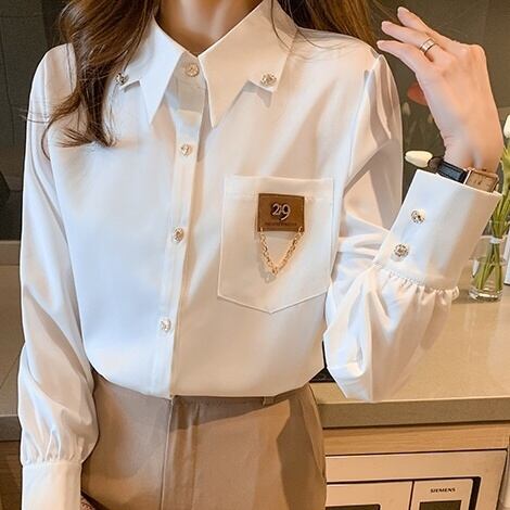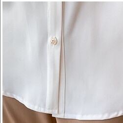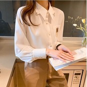 レディース トップス ブラウス 袖あり 長袖 ボリューム袖 Vネック 襟付き 細身 ストレート 前開き かわいい 大人可愛い きれいめ シンプル カジュアル 大人 おしゃれ お洒落 かっこいい こなれ感 ラフ ボーイッシュ 個性的 クール S M L XL 2XL ホワイト くすみカラー 大人カラー アプリコット 無地 春 夏 秋 2021 10代 20代 30代 40代 オフィス ビジネス OL 通勤 学生 通学 デート お出かけ 普段使い コーデ モテ 定番 送料無料 トレンド 流行 インスタ映え | Rena 韓国ファッション レディースアパレル