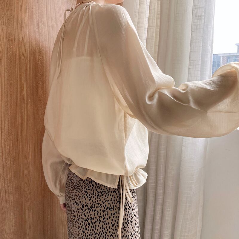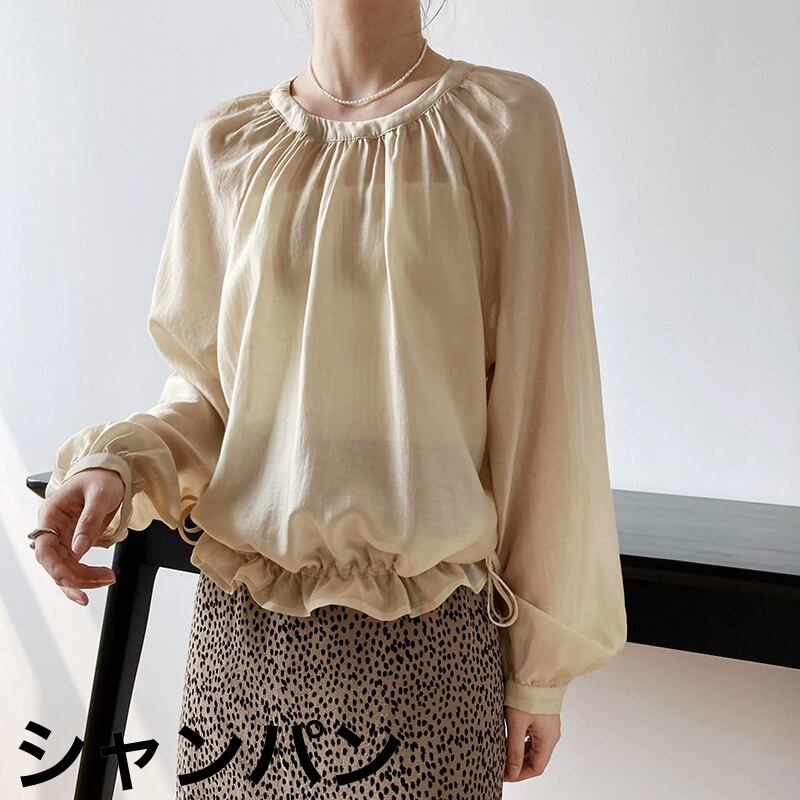 トップス ブラウス 袖あり 長袖 ボリューム袖 ラウンドネック フレア セミフレア シフォン ふわふわ 透け感 シースルー かわいい 大人可愛い きれいめ シンプル 大人 上品 おしゃれ お洒落 キュート 個性的 クール セクシー エレガント 主役級 フォーマル 抜け感 M L くすみカラー 大人カラー 無地 春 夏 結婚式 二次会 披露宴 オフィス ビジネス OL デート お出かけ パーティー 韓国 オルチャン ファッション コーデ 新作 送料無料 トレンド 流行 インスタ映え | Rena 韓国ファッション レディースアパレル