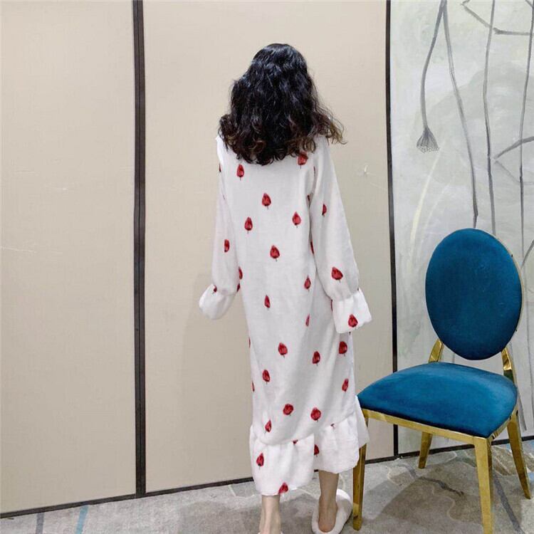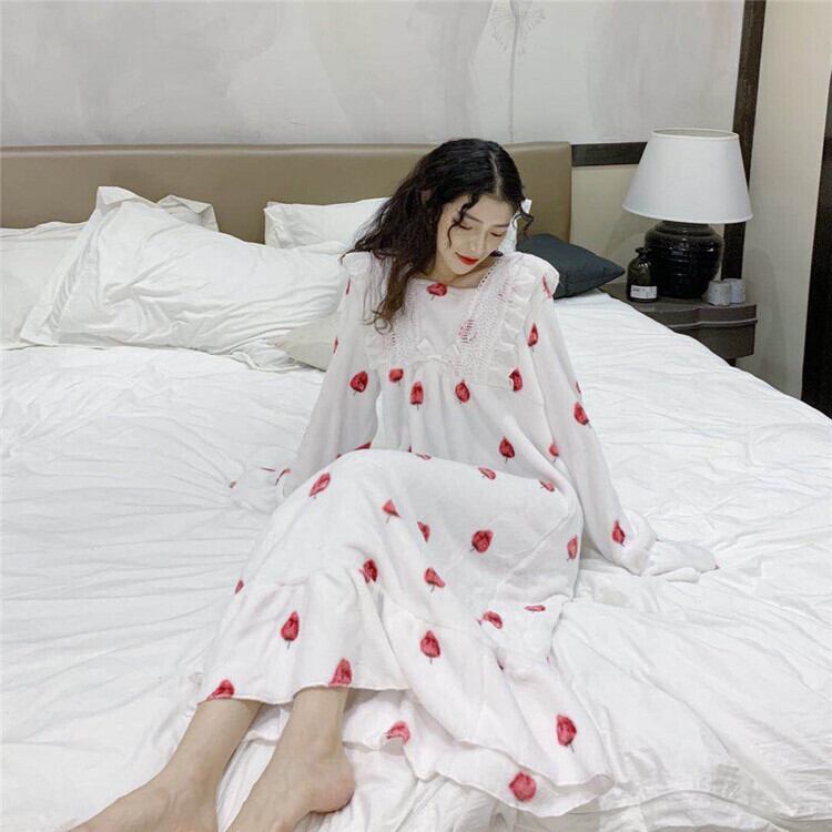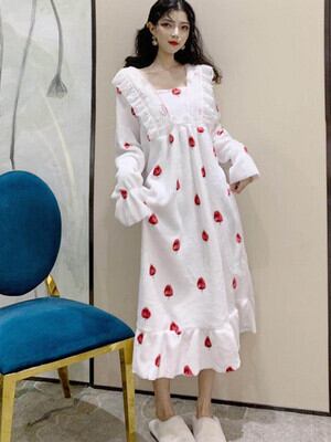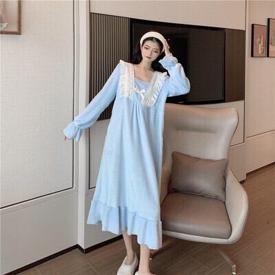 レディース ワンピース ルームウェア パジャマ 部屋着 ナイトウェア ロング ロング丈 長袖 襟付き フリル ふわふわ かわいい おしゃれ ラブリー キュート ガーリー 個性的 存在感 フリーサイズ 白 ホワイト 青 ブルー ピンク 水色 無地 柄 冬 10代 お泊まり 休日 ファッション コーデ 楽ちん あったか 送料無料 | Rena 韓国ファッション レディースアパレル