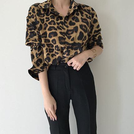 レディース トップス シャツ 長袖 カジュアル 大人 上品 おしゃれ お洒落 かっこいい 大人女子 個性的 クール 主役級 存在感 S M L 柄 ヒョウ柄 秋 冬 10代 20代 30代 40代 50代 女性用 デート お出かけ 公園デビュー 女子会 休日 着回し ファッション コーデ 送料無料 インスタ映え | Rena 韓国ファッション レディースアパレル