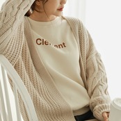 長袖、ボタンのないゆるいシルエットのカーディガンです。