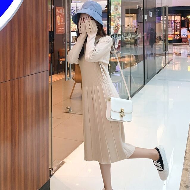 レディース ワンピース ニット ミモレ ミモレ丈 長袖 ラウンドネック スリム 細身 ストレート Iライン ニット かわいい 大人可愛い きれいめ シンプル カジュアル 大人 おしゃれ お洒落 大人可愛い 大人女子 こなれ感 キュート 個性的 とろみ感 抜け感 黒 ブラック ブルー 緑 ベージュ ネイビー 無地 秋 冬 2021 20代 30代 学生 通学 デート お出かけ 公園デビュー 女子会 休日 韓国 韓国系 オルチャン ファッション あったか 暖か 防寒 モテ 新作 送料無料 流行 インスタ映え | Rena 韓国ファッション レディースアパレル