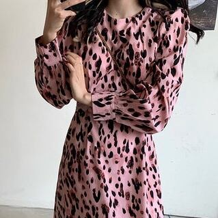 ブラックやブラウンのドットがおしゃれなロングワンピース