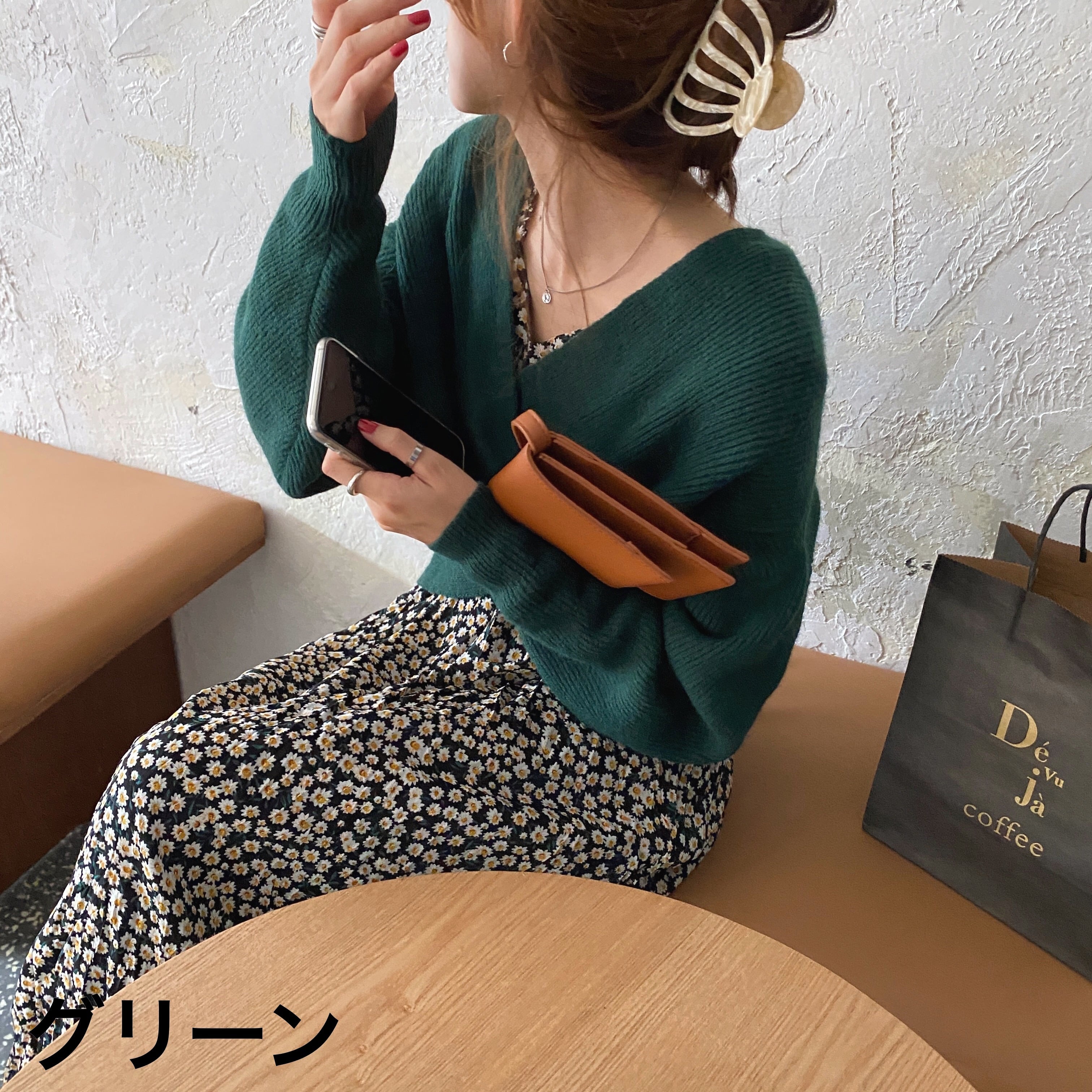 レディース トップス ニット 袖あり 長袖 Vネック ワイド かわいい 大人可愛い きれいめ シンプル カジュアル 大人 上品 おしゃれ お洒落 レトロ 大人可愛い 大人女子 こなれ感 ラフ キュート 主役級 存在感 とろみ感 S M L 緑 グリーン 紫 パープル 茶色 ブラウン くすみカラー 秋カラー 無地 秋 冬 2021 20代 30代 オフィス ビジネス OL 通勤 学生 通学 デート 休日 韓国 オルチャン ファッション コーデ スタイル 暖かい モテ トレンド 流行 インスタ映え | Rena 韓国ファッション レディースアパレル