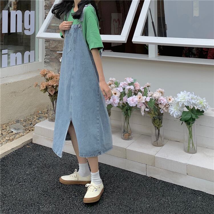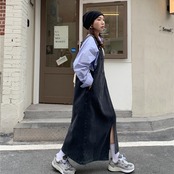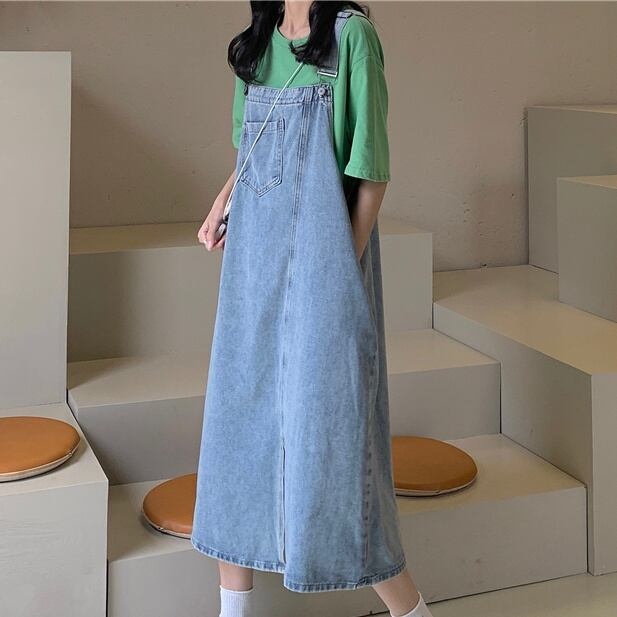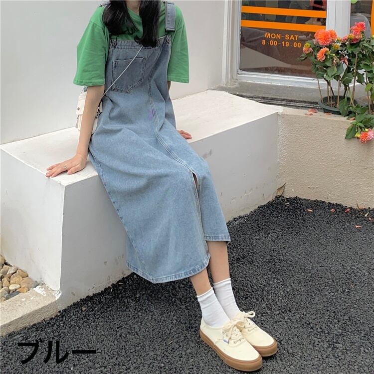 レディース ワンピース サロペット デニムワンピース ロング ロング丈 袖なし スクエアネック 細身 ストレート Iライン 綿 かわいい 大人可愛い きれいめ シンプル カジュアル おしゃれ お洒落 かっこいい こなれ感 ラフ ボーイッシュ スポーティー 個性的 存在感 ワンサイズ くすみカラー 無地 春 夏 2021 20代 30代 通勤 学生 通学 デート お出かけ 公園デビュー 女子会 旅行 韓国 オルチャン ファッション コーデ スタイル モテ 新作 トレンド 流行 インスタ映え | Rena 韓国ファッション レディースアパレル