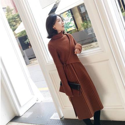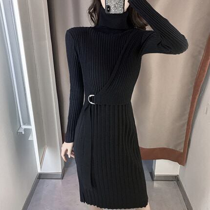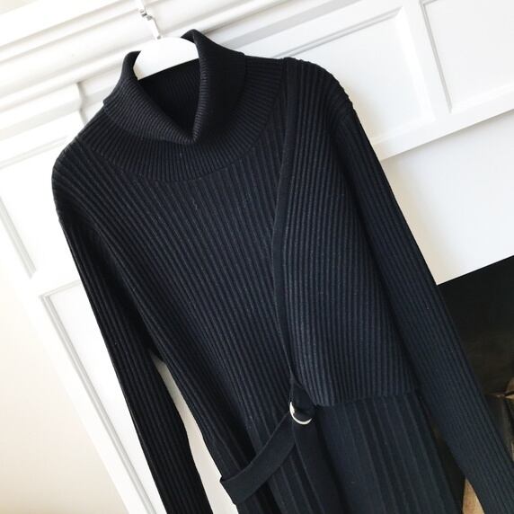 重ね着風がおしゃれなハイネックの長袖ワンピース