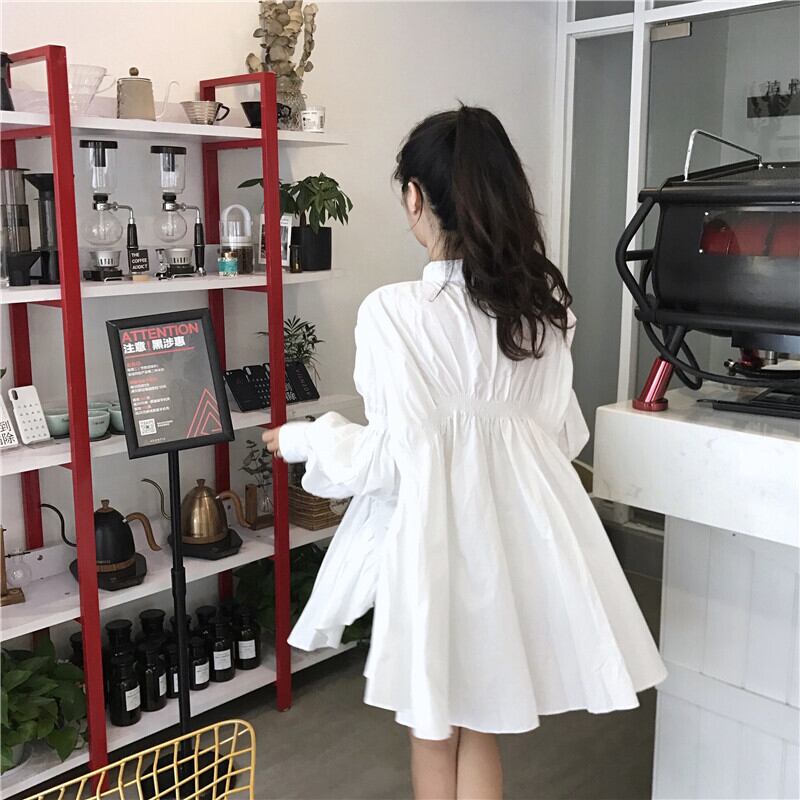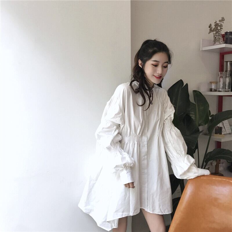 レディース ワンピース シャツ シャツワンピース ミニ ミニ丈 ショート ショート丈 袖あり 長袖 ボリューム袖 ラウンドネック ワイド 裾フレア かわいい 大人可愛い きれいめ シンプル カジュアル 大人 おしゃれ お洒落 大人可愛い 大人女子 こなれ感 ラフ ワンサイズ 白 ホワイト 無地 オールシーズン 2021 20代 30代 学生 通学 デート お出かけ 公園デビュー 女子会 休日 アウトドア 着回し 普段使い 韓国 韓国系 オルチャン 楽ちん モテ 送料無料 トレンド 流行 インスタ映え | Rena 韓国ファッション レディースアパレル