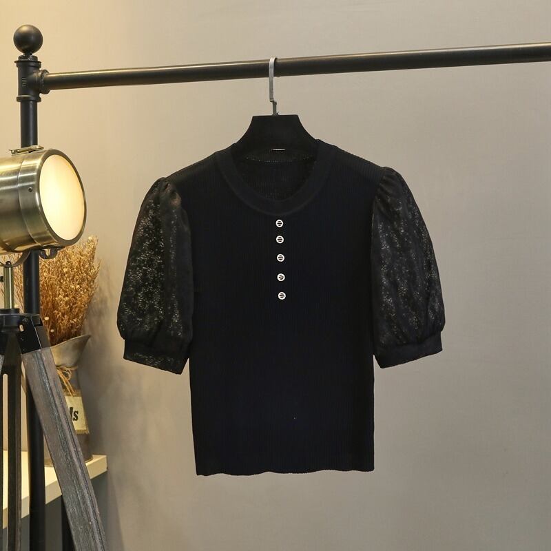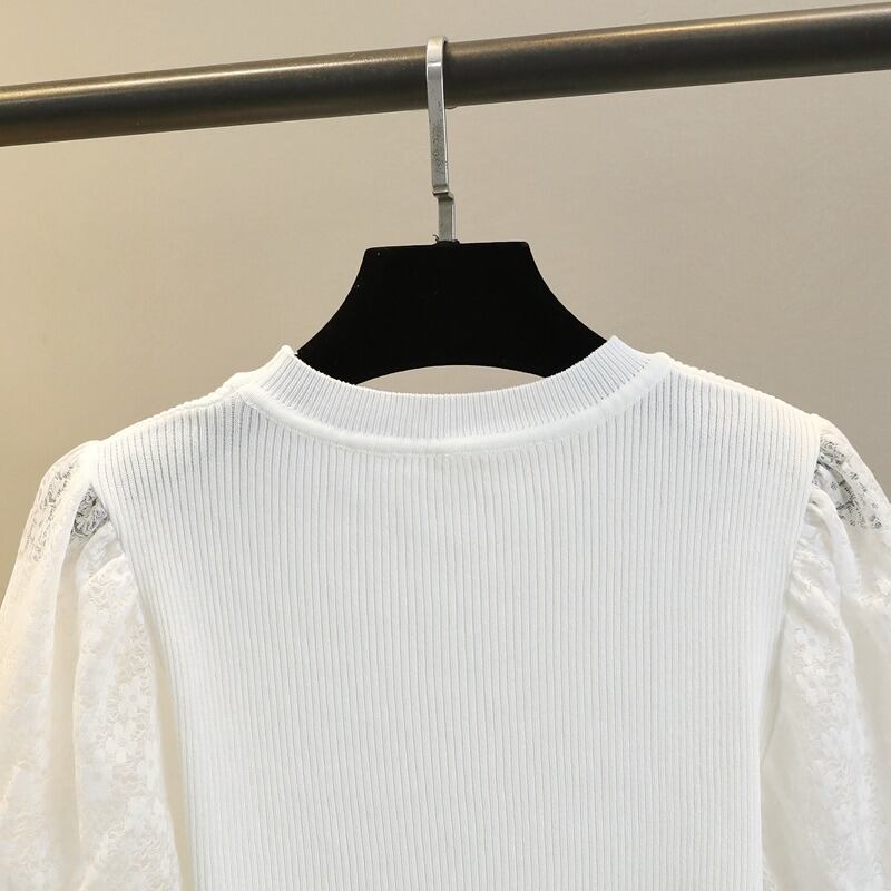 レディース トップス ニット 袖あり レース かわいい 大人可愛い 上品 おしゃれ お洒落 大人可愛い 大人女子 S M L XL 白 ホワイト 黒 ブラック 春 夏 10代 20代 30代 ビジネス OL 通勤 学生 通学 デート お出かけ 女子会 休日 ファッション コーデ 送料無料 | Rena 韓国ファッション レディースアパレル