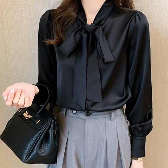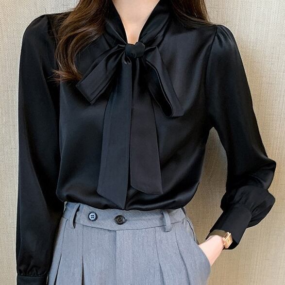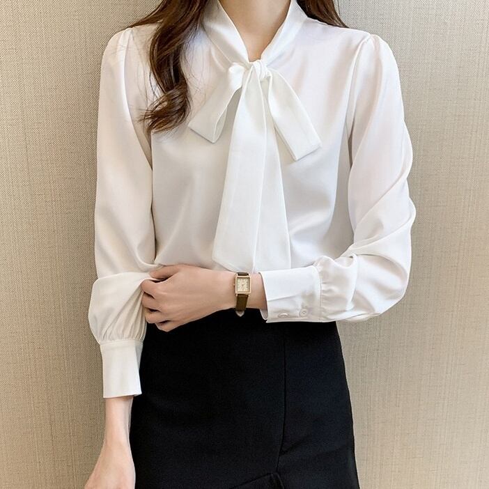 レディース トップス ブラウス 長袖 リボン かわいい 大人可愛い きれいめ 大人 おしゃれ お洒落 大人可愛い 大人女子 S M L XL 2XL 白 ホワイト 黒 ブラック ブラウン 春 秋 10代 20代 30代 40代 オフィス ビジネス OL 通勤 デート お出かけ 女子会 休日 イベント ファッション コーデ 送料無料 | Rena 韓国ファッション レディースアパレル