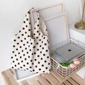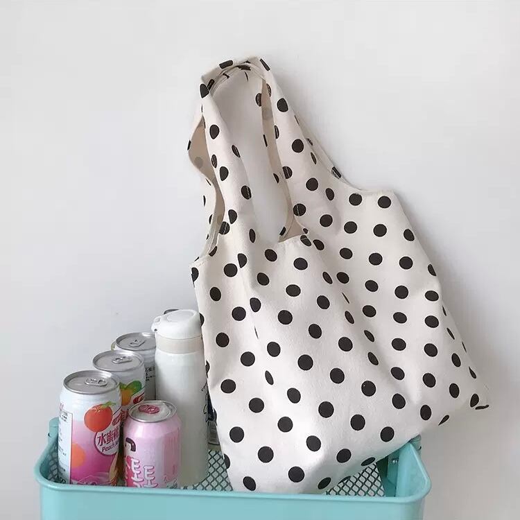 レディース バッグ レディースバッグ トートバッグ エコバッグ 大容量 便利 a4 肩がけ コンパクト 軽量 軽い 使いやすい 柔らかい スクエア型 ポリエステル キャンバス 大人可愛い シンプル レトロ 大人女子 大きめ 大きい a4 A4 白 ホワイト 柄 ドット柄 水玉 オールシーズン シーズンレス 10代 20代 30代 レディース 女性用 ママ マザー 学生 通学 お出かけ 休日 お買い物 レジ スーパー デイリー 普段使い 送料無料 | Rena 韓国ファッション レディースアパレル