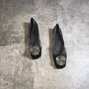 レディース パンプス スクエアトゥパンプス 1cmヒール ローヒール ビジュー キラキラ PU かわいい カジュアル おしゃれ 20.5cm 21.0cm 21.5cm 22.0cm 22.5cm 23.0cm 23.5cm 24.0cm 24.5cm 25.0cm 25.5cm 26.0cm 26.5cm 27.0cm ホワイト ブラック グリーン 無地 春 夏 2021 10代 20代 女性用 ママ 学生 通学 デート お出かけ 女子会 休日 旅行 韓国系 新作 送料無料 | Rena 韓国ファッション レディースアパレル