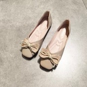 スクエアトゥのりぼん付きフラットパンプスです。