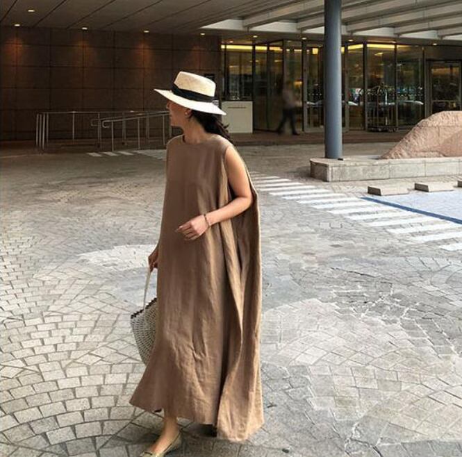 ワンピース ノースリーブ Aライン マキシ丈 ロング丈 ノースリーブ ラウンドネック ワイド かわいい 大人可愛い きれいめ シンプル カジュアル 大人 おしゃれ レトロ アジアン 大人可愛い 大人女子 こなれ感 ラフ フリーサイズ ブラック ブラウン 大人カラー クリーム 無地 春 夏 10代 20代 30代 40代 50代 60代 女性用 OL 通勤 学生 通学 デート お出かけ 女子会 休日 旅行 着回し 普段使い ファッション コーデ スタイル 送料無料 | Rena 韓国ファッション レディースアパレル