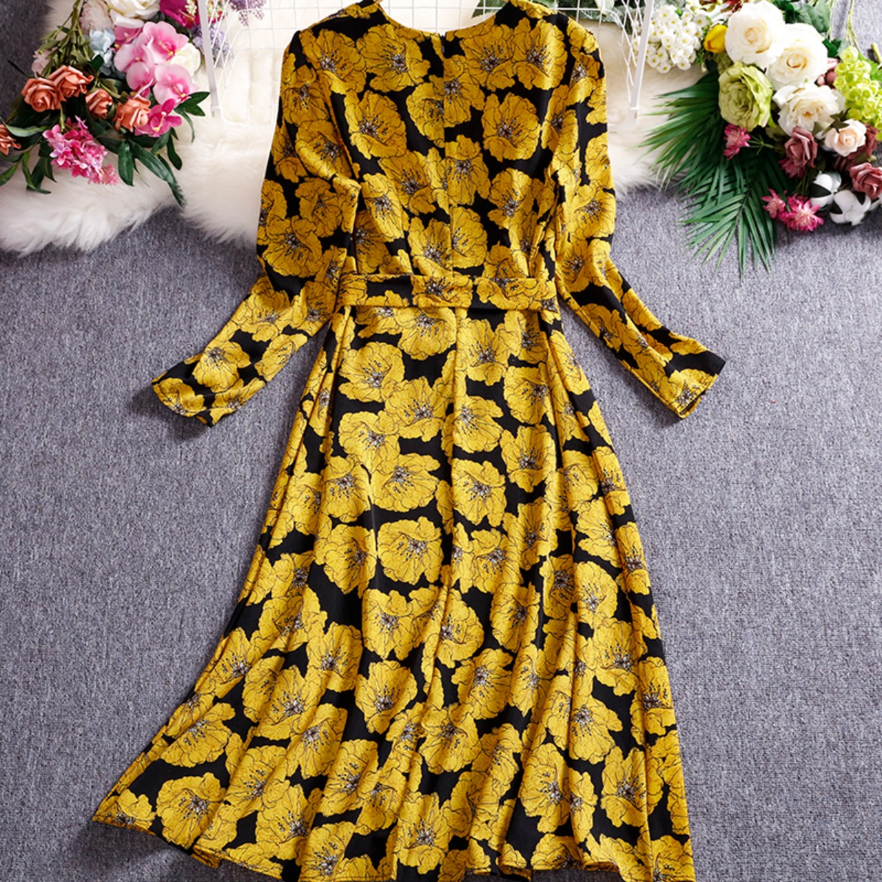 ワンピース 花柄 フレアワンピース ロング丈 長袖 ラウンドネック リボン セミフレア レトロ 春 夏 秋 Aライン かわいい 大人可愛い きれいめ シンプル カジュアル 大人 上品 おしゃれ 大人可愛い 大人女子 こなれ感 ラブリー キュート ガーリー フリーサイズ ブルー イエロー ピンク 大人カラー 謝恩会 10代 20代 30代 40代 50代 女性用 OL 通勤 学生 通学 デート お出かけ 女子会 休日 パーティー イベント ファッション コーデ スタイル モテ 送料無料 | Rena 韓国ファッション レディースアパレル