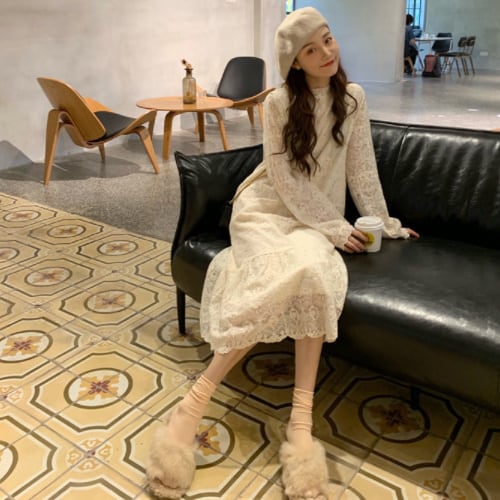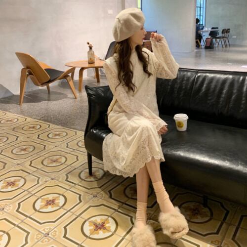 レディース ワンピース ロング ロング丈 袖あり 長袖 レース かわいい 大人可愛い きれいめ シンプル カジュアル 大人 上品 おしゃれ お洒落 大人可愛い 大人女子 ラブリー キュート ガーリー 存在感 フリーサイズ ゆったり オフホワイト 春 夏 秋 20代 30代 40代 オフィス ビジネス OL 通勤 学生 通学 デート お出かけ 休日 普段使い お揃い 韓国系 コーデ スタイル 楽ちん モテ 体系カバー 美脚 脚長 定番 送料無料 トレンド 流行 インスタ映え | Rena 韓国ファッション レディースアパレル