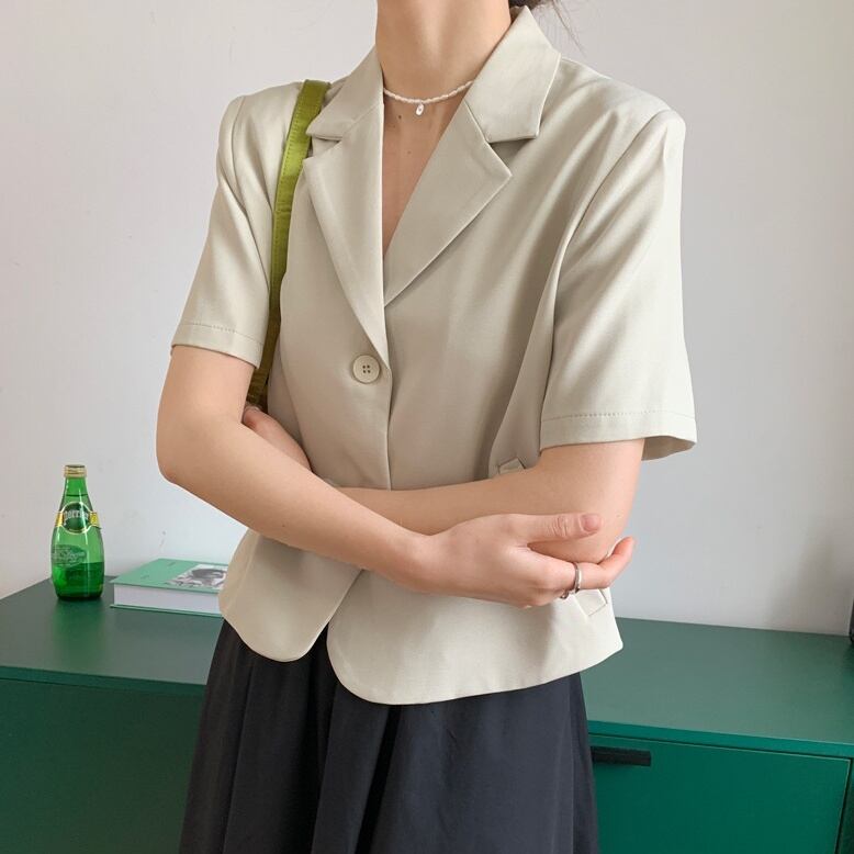 ぴったりしすぎない着心地が魅力的な、半袖ジャケットです。
