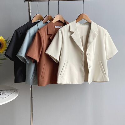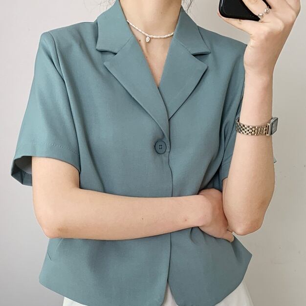 レディース トップス 半袖ジャケット Vネック 襟付き ストレート 前開き かわいい 大人可愛い きれいめ シンプル カジュアル 大人 上品 おしゃれ お洒落 大人可愛い 大人女子 こなれ感 ラフ 黒 ブラック 青 ブルー オフホワイト オレンジ くすみカラー 大人カラー 無地 夏 2021 20代 30代 オフィス ビジネス OL 通勤 学生 通学 デート お出かけ 休日 着回し 韓国 韓国系 オルチャン ファッション コーデ スタイル モテ 送料無料 トレンド 流行 インスタ映え | Rena 韓国ファッション レディースアパレル