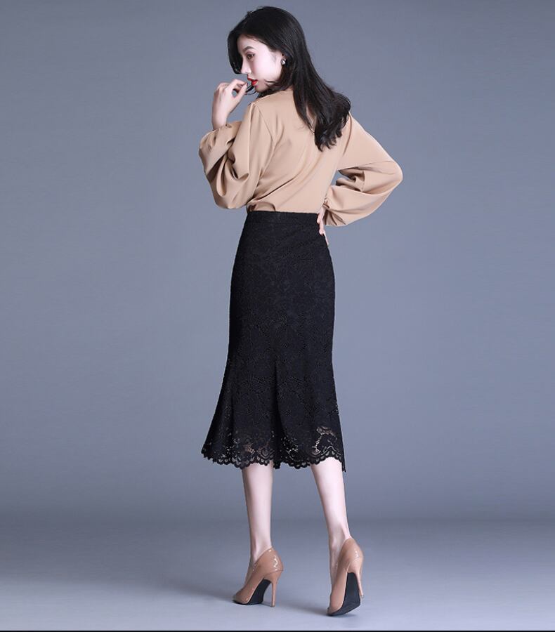 レディース スカート ボトムス 膝丈 ひざ丈 マーメイド レース きれいめ シンプル 大人 上品 おしゃれ お洒落 大人女子 こなれ感 セクシー エレガント M L XL 2XL 3XL 4XL 黒 ブラック オールシーズン 20代 30代 オフィス ビジネス OL 通勤 ファッション コーデ スタイル 送料無料 | Rena 韓国ファッション レディースアパレル