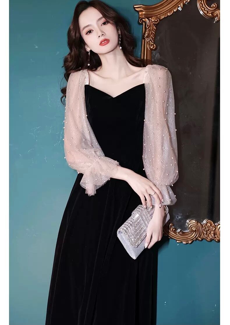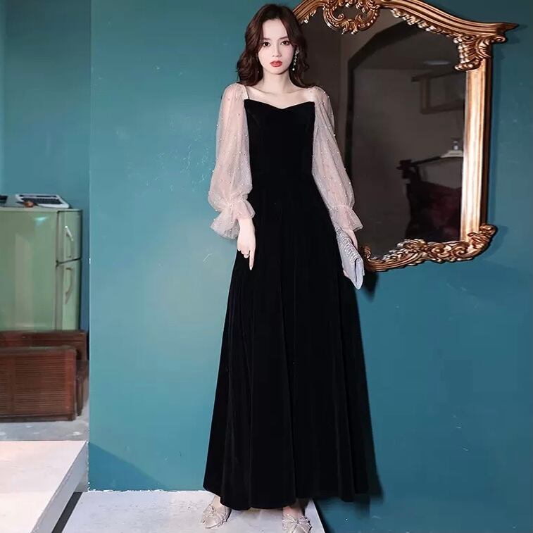 レディース ドレス dress ワンピース パーティードレス 二次会ドレス ロング ロング丈 袖あり 長袖 ボリューム袖 スクエアネック ドッキング ハイウエスト 透け感 胸元 エレガント 華やか 大人 クラシック 存在感 キュート セクシー XS S M L XL 2XL 3XL 小さいサイズ 大きいサイズ 黒 ブラック ワインレッド 無地 冬 二次会 2次会 パーティー 2021 10代 20代 30代 女性用 ママ ホテル ガーデン レストラン 体系カバー 新作 送料無料 高見え | Rena 韓国ファッション レディースアパレル